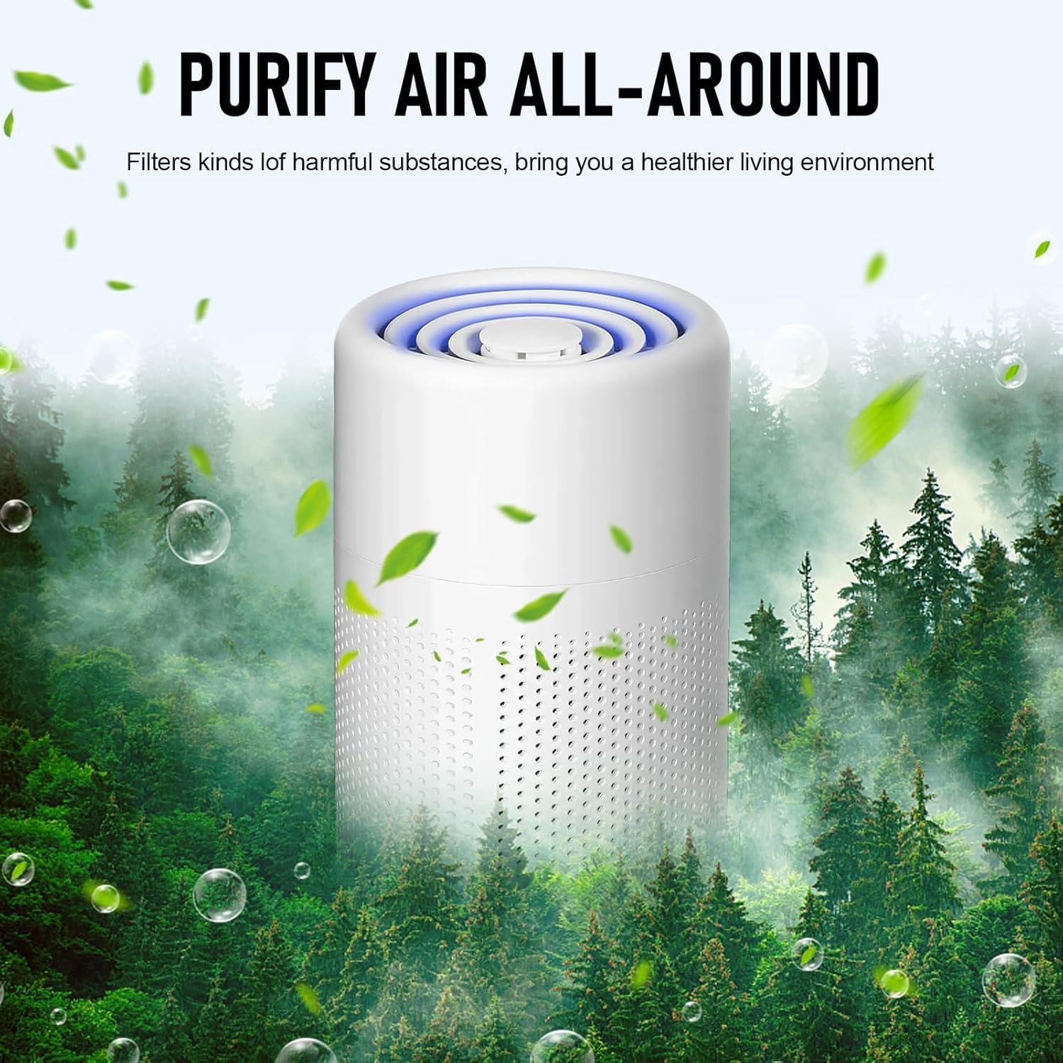 360° AIR PURIFICATION: Utilizes a 360° air intake system that pulls in air from all directions, maximizing purification efficiency and ensuring robust protection against airborne contaminants.