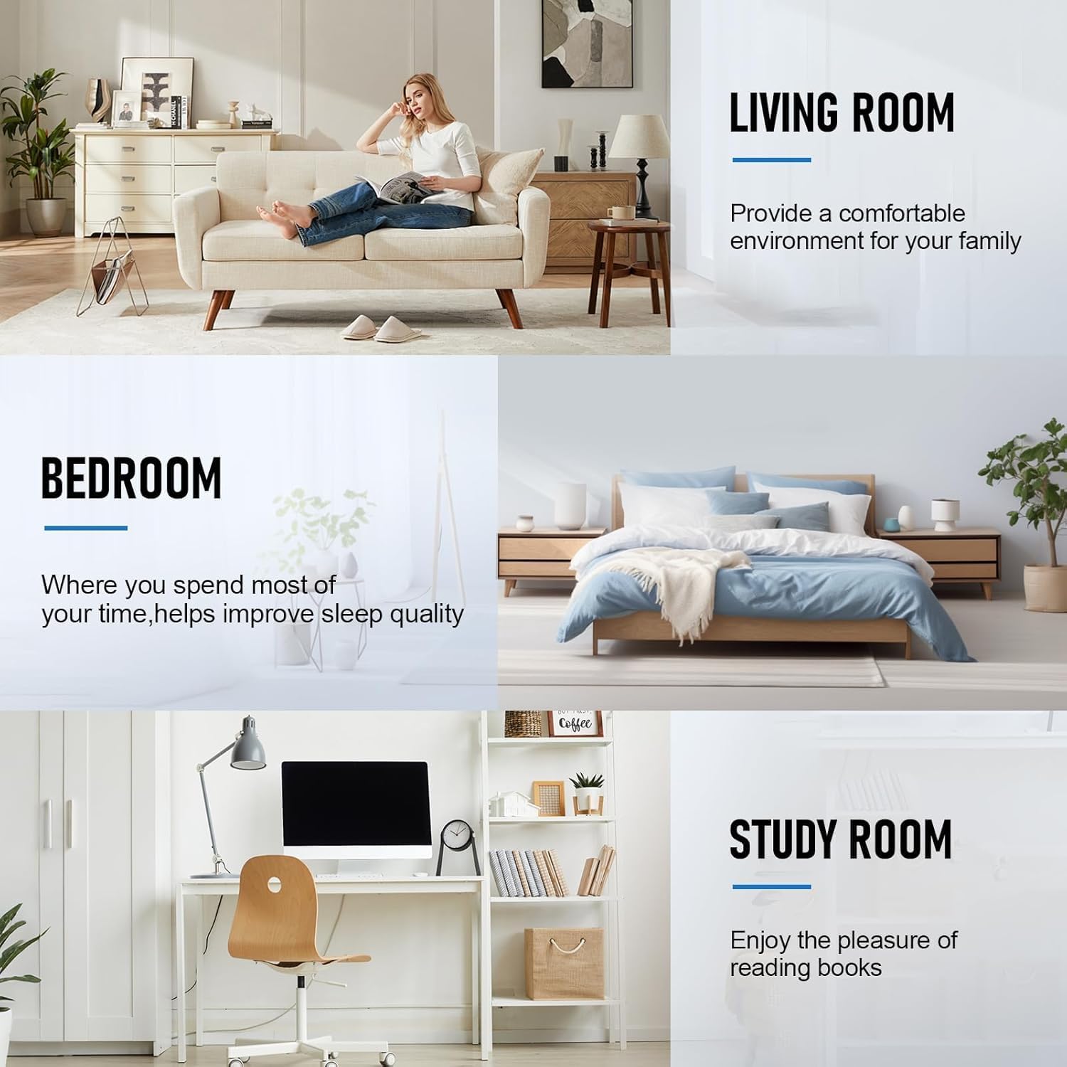 SMART FEATURES & EASY MAINTENANCE Includes 4 fan speeds, Sleep Mode, Timer, Child Lock, and Negative Ion Generator (3 million/cm³) to elevate air quality. A built-in Filter Life Reminder ensures timely replacements for long-lasting performance.