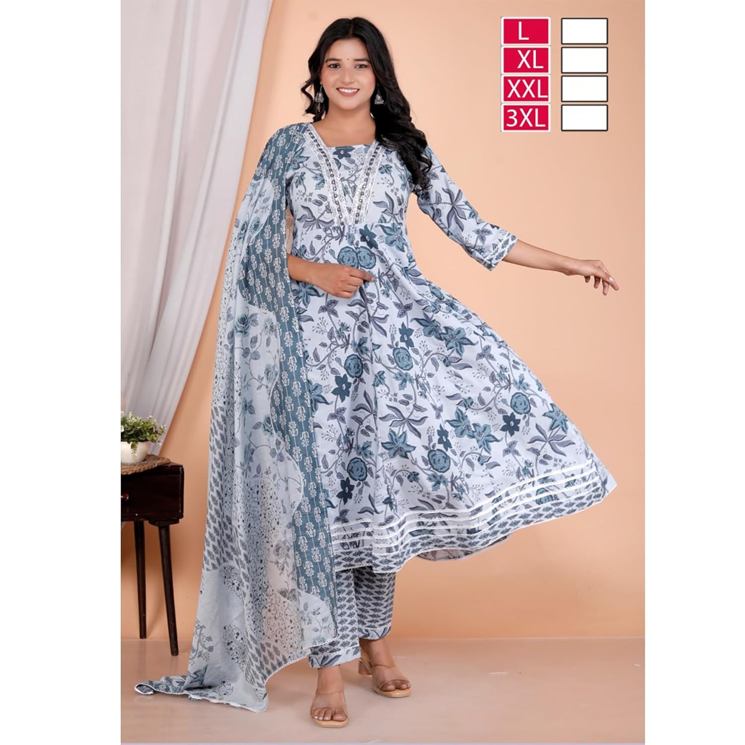 Upgrade your everyday ethnic wardrobe with this elegant and comfortable Women’s Printed Kurta Set, thoughtfully designed as a complete 3-piece outfit that blends traditional charm with modern practicality. This ethnic wear set includes a beautifully printed kurta, straight-fit pants, and a matching dupatta, making it an ideal choice for women who prefer coordinated styling without extra effort. Crafted from soft, breathable fabric, the kurta set ensures superior comfort throughout the day, whether worn for casual outings, office hours, or relaxed family gatherings. The kurta features a flattering straight silhouette enhanced with graceful floral prints that add a refreshing and feminine appeal. A functional pocket is seamlessly incorporated into the kurta design, providing everyday convenience while maintaining a neat and stylish appearance. The straight pants offer a comfortable fit and easy movement, making this outfit suitable for long hours of wear. The matching dupatta complements the kurta print perfectly, adding elegance and versatility to the overall look. Whether draped traditionally or styled casually, the dupatta enhances the ethnic appeal of the set. Designed for modern women who value comfort as much as style, this kurta set is suitable for casual outings, daily wear, office ethnic days, small festive occasions, pooja functions, and informal gatherings. The lightweight fabric allows breathability, making it especially comfortable in warm weather and suitable for all-season wear. Easy to style with minimal jewelry, flats, or ethnic footwear, this kurta set offers a polished yet relaxed appearance. Durable stitching and quality finishing ensure long-lasting use, even with regular wear. Easy to maintain, the fabric retains its color and print with proper care, making this set a reliable addition to your ethnic wardrobe.