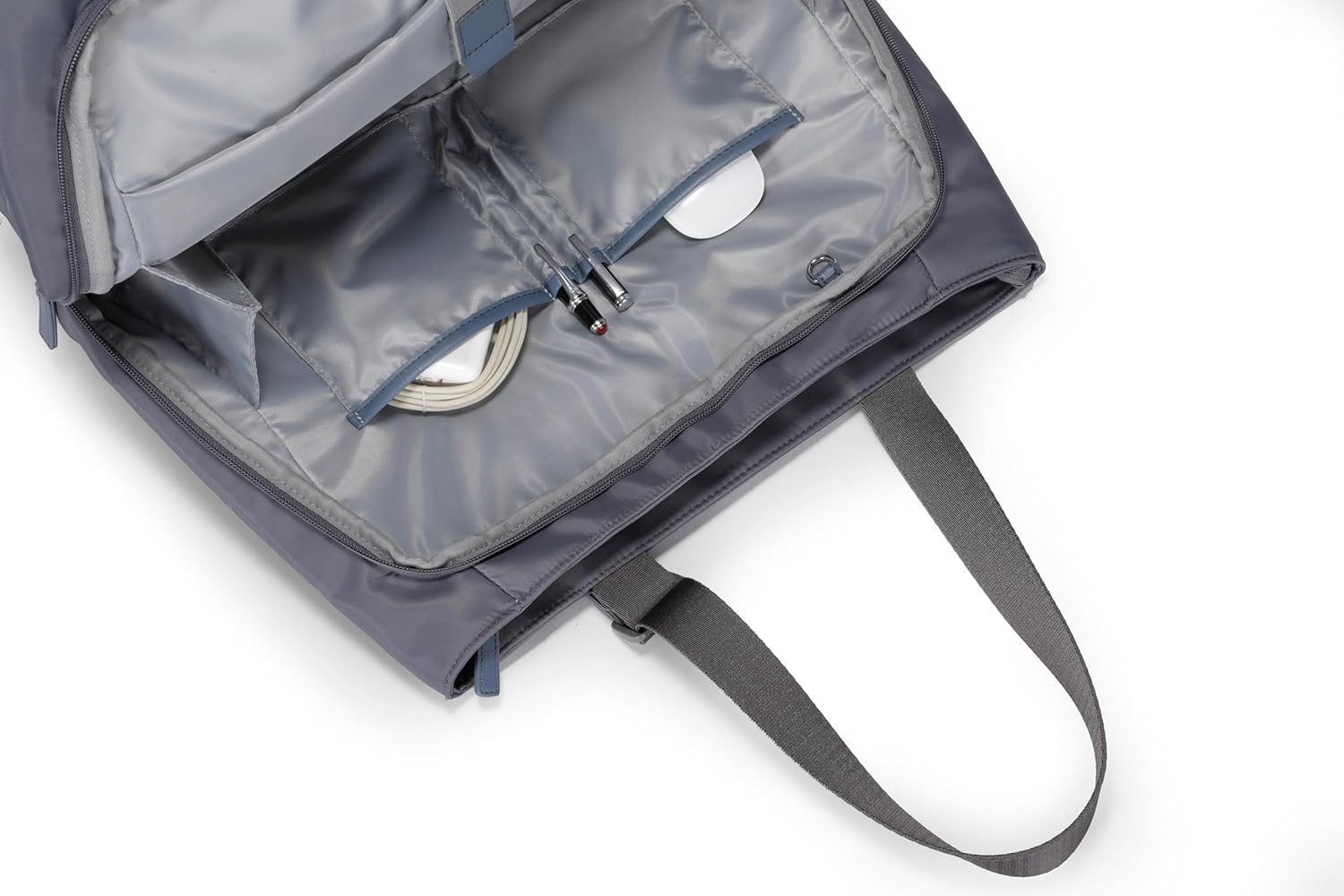The tote bag features 1 main computer padded compartment, 1 large zipper pocket, 2 slip pockets, 2 pen slots, 1 external wall zipper pocket, and 1 back zipper pocket. Plus, some details combine security with ease of use. Thick foam padding inside the computer compartment, allows this women’s laptop bag to better protect your laptop from bumps.