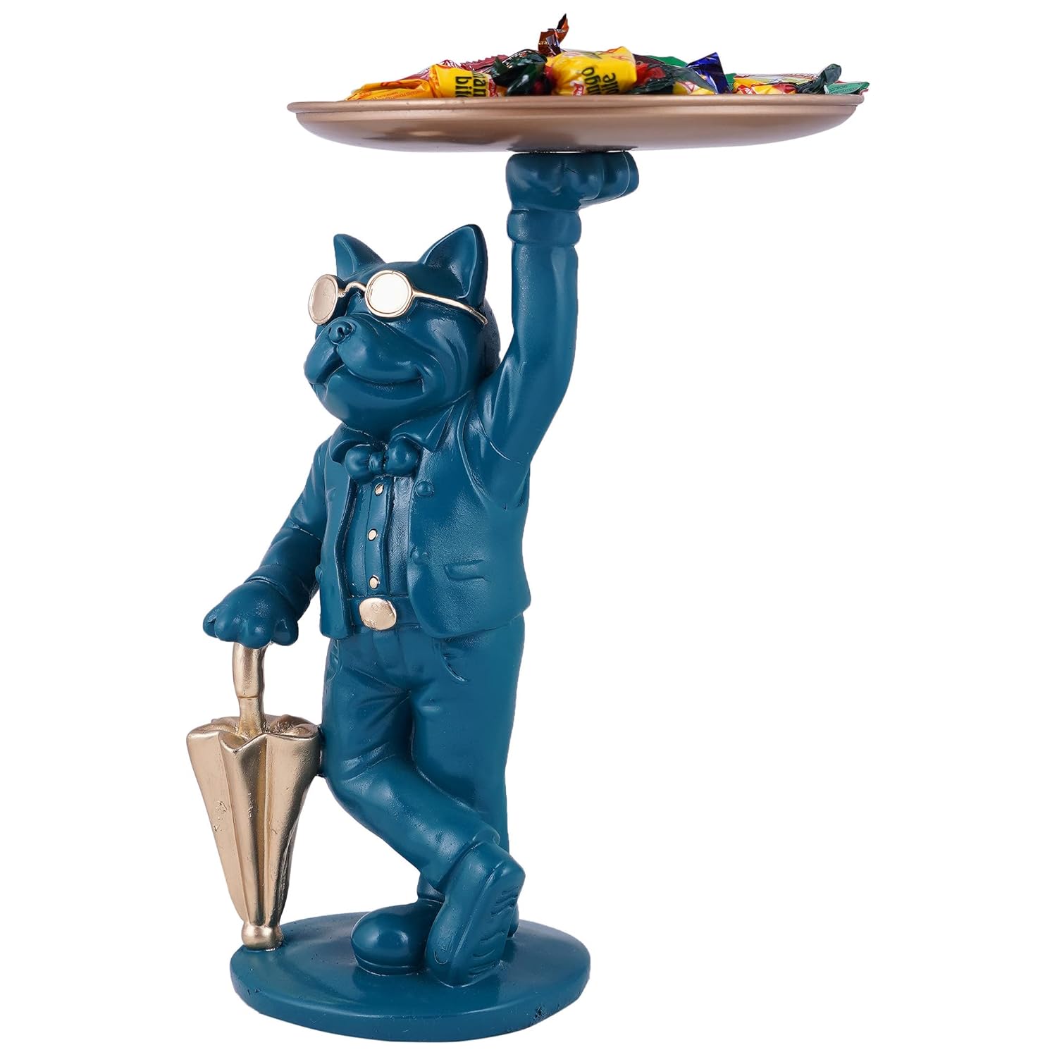 zart Resin Cool Dog Action Showpiece With Plate Home Decor Showpiece,Living Room Decor Showpiece(Blue),10 Cm,7 Cm